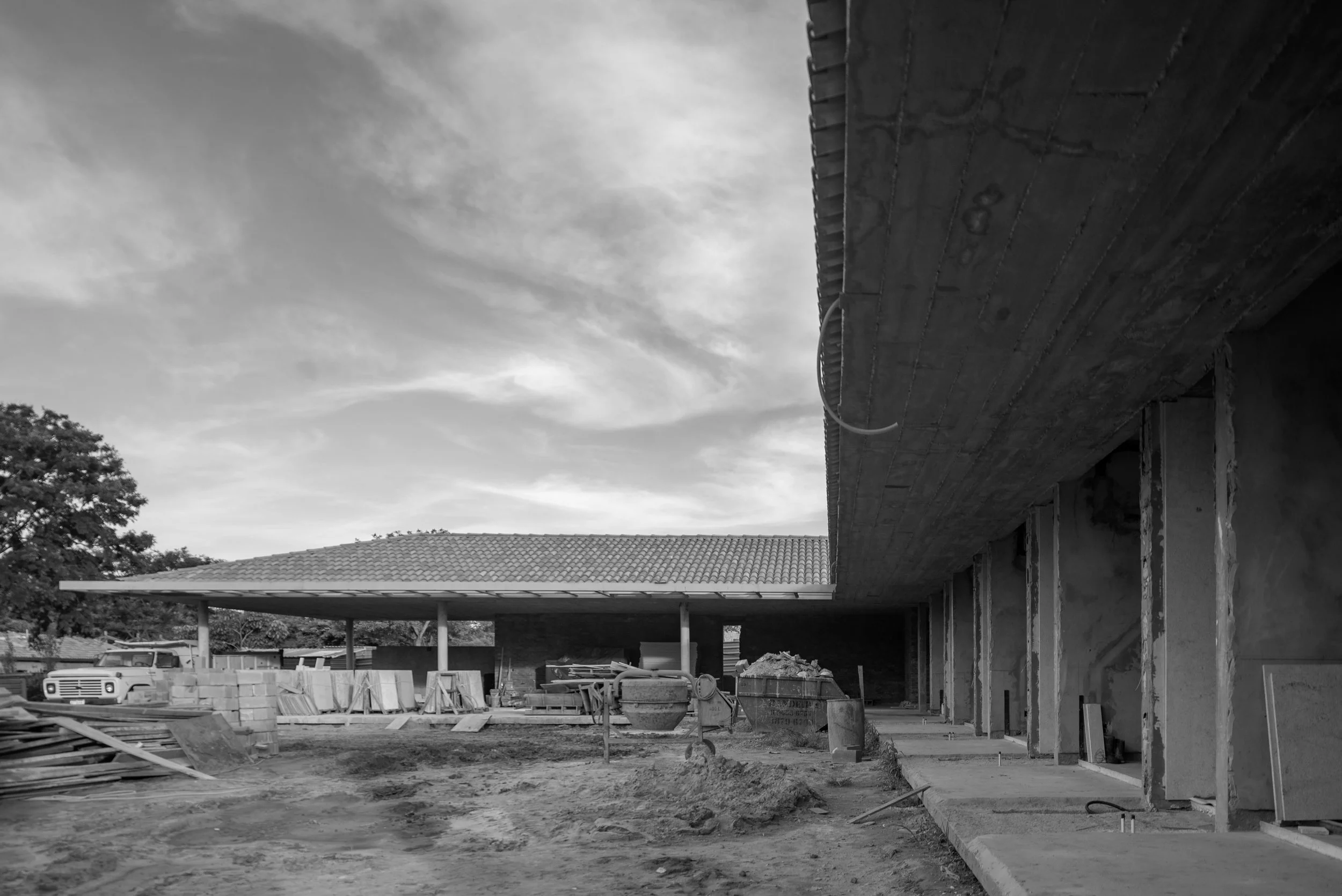 A ESTRUTURA DA CASA BETON É COMPOSTA POR CONCRETO ARMADO, COM VIGAS INVERTIDAS QUE GARANTEM UM TETO LISO DE CONCRETO, E UMA LAJE DE PISO ELEVADA, TRANSFORMANDO A ÁREA DO BEIRAL EM UM BANCO CONTÍNUO AO REDOR DA CASA. O USO DO CONCRETO ARMADO E DO PISO PRÉ-MOLDADO CONFERE ROBUSTEZ E DURABILIDADE AO PROJETO, ENQUANTO A PÉRGOLA EM AÇO CORTEN ADICIONA UM ELEMENTO DE SOFISTICAÇÃO. A FACHADA REFLETE A FILOSOFIA DE DESIGN AO COMBINAR MATERIAIS TRADICIONAIS E MODERNOS, CRIANDO UMA ESTÉTICA ATEMPORAL E INTEGRADA AO AMBIENTE NATURAL.